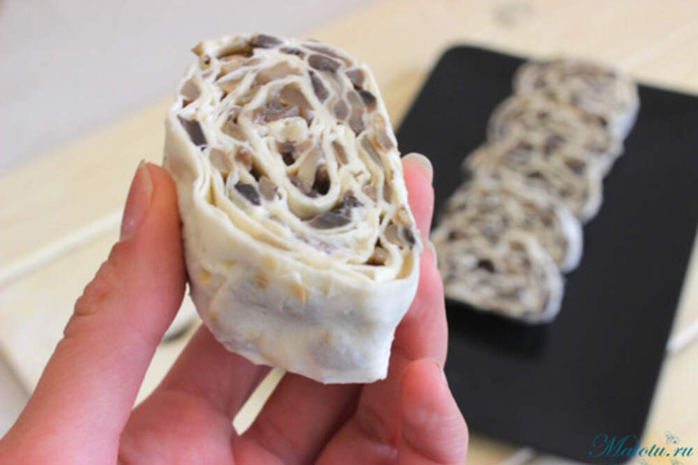 Рецепт приготовления очень легкой и вкусной закуски, рулет из лаваша с грибами. Простота рецепта никак не влияет на его вкусовые качества. Рецепт правильного питания. Готовим и пробуем.👍... Далее